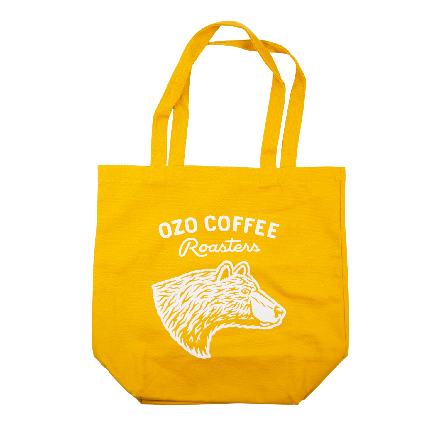 Crafted from durable cotton canvas, these bags are sturdy enough for heavy loads while still comfortable to carry. Available in two bright, eye-catching colors — teal and yellow — each tote features our signature OZO bear graphic, making it a stylish way to show your coffee pride around town.