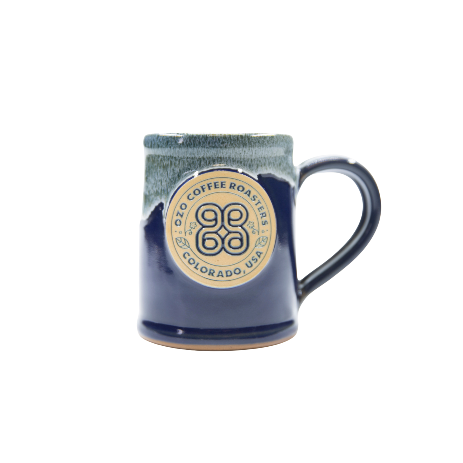 Featuring a rich navy glaze with a warm cinnamon white accent, this mug captures the cozy, grounded feel of Colorado mornings. The signature OZO Coffee Roasters medallion is proudly stamped on the front, adding a timeless, handcrafted touch that feels at home both in your kitchen and on the trail.